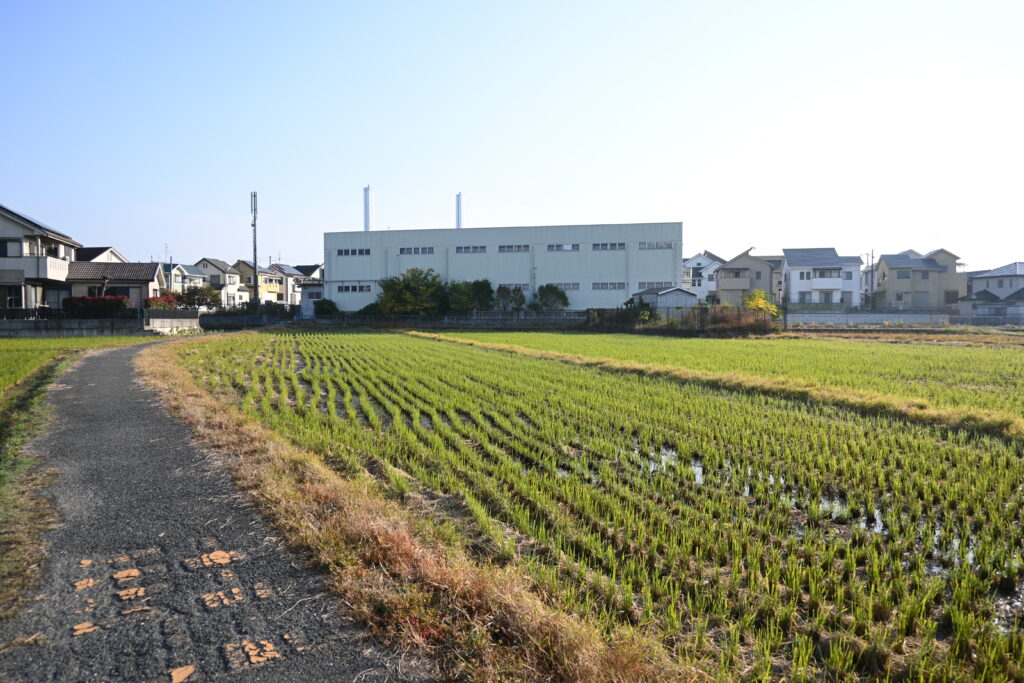 細い道、両側に田んぼ